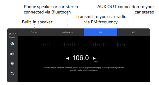 AUX cable: plug into AUX OUT port and car stereo AUX IN.