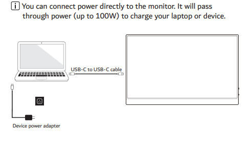 The monitor will display automatically when your laptop’s USB-C port supports video output and power delivery (PD).