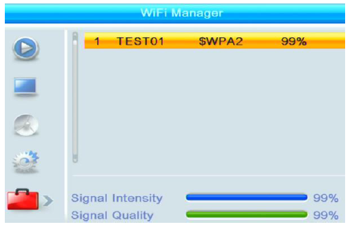 The box will display available WiFi networks. It supports 2.4GHz WiFi only.